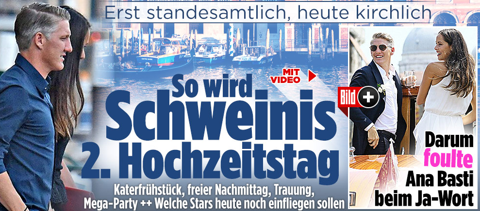We wouldn’t usually cover a footballer getting married, but this is the biggest story in Germany right now. Not just the biggest sport story, Bild have it as their website main lead.