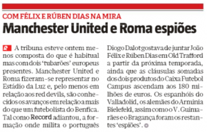 And as reported by local newspapers Record and O Jogo, the Red Devils had two targets to be watched on the pitch: Ruben Dias and João Félix.