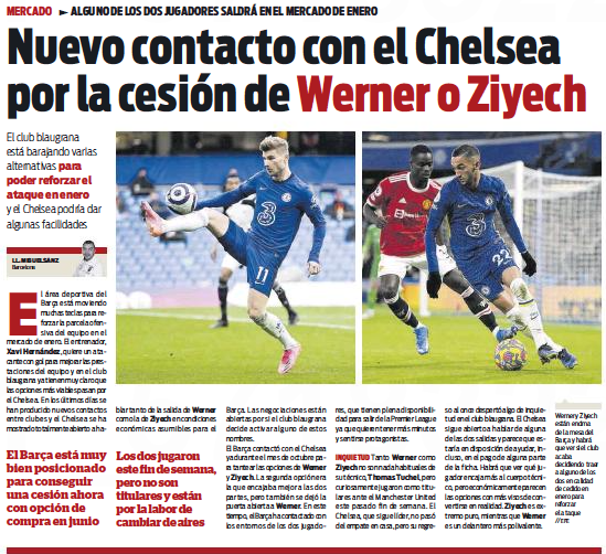 Tuchel started Ziyech and Werner in his side’s 1-1 draw against Manchester United at the weekend. This had ‘aroused some concern’ at the Camp Nou.