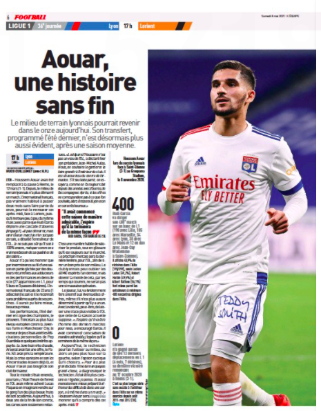 They cover the midfielder today, explaining that Aouar has had something of an indifferent campaign as constant abductor problems and a lack of form have meant he’s been unable to hit his top level.