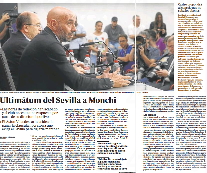 The newspaper states Sevilla need an answer from Monchi, likely in the next few hours.