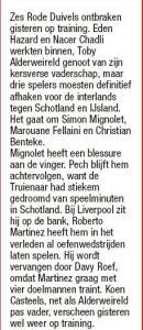 Today’s edition of Het Belang van Limburg claims the Reds custodian has an ‘injury to his finger’ and it comes as a blow for him as the 30-year-old secretly dreamt of getting minutes against Scotland.