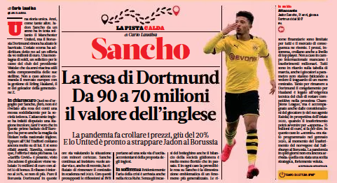 The Italian newspaper has a rather big article on Manchester United wanting the Borussia Dortmund star, describing it a ‘unique story’.