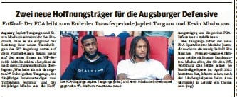 Wednesday’s Wertinger Zeitung has a report on the Tottenham owned player and Mbabu, and they suggest the duo are considered as hopefuls to ‘stabilise’ Augsburg’s defence.