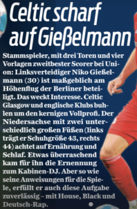 Union Berlin’s Niko Gießelmann has emerged as a transfer target for Celtic, as reported in this week’s edition of SportBild.