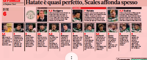 Gazzetta dello Sport name Celtic’s Liam Scales as ‘the worst’ player after his side’s defeat and they gave him the lowest rating of 4.5/10.