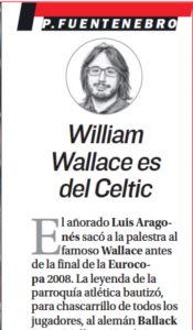 William Wallace is explained for a Spanish audience, with the assistance of Mel Gibson and Braveheart, and the column ends by saying ‘Celtic said goodbye to Europe like a warrior’.
