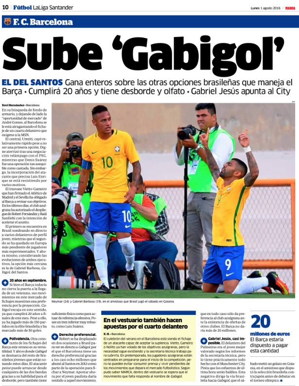This story will likely explode if Gabigol has a good Olympics for Brazil.