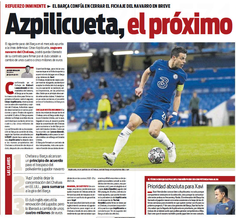 The report then states the Leipzig defender could ‘soon sign for Chelsea’ and this development will open the door for Azpilicueta to join Barcelona.