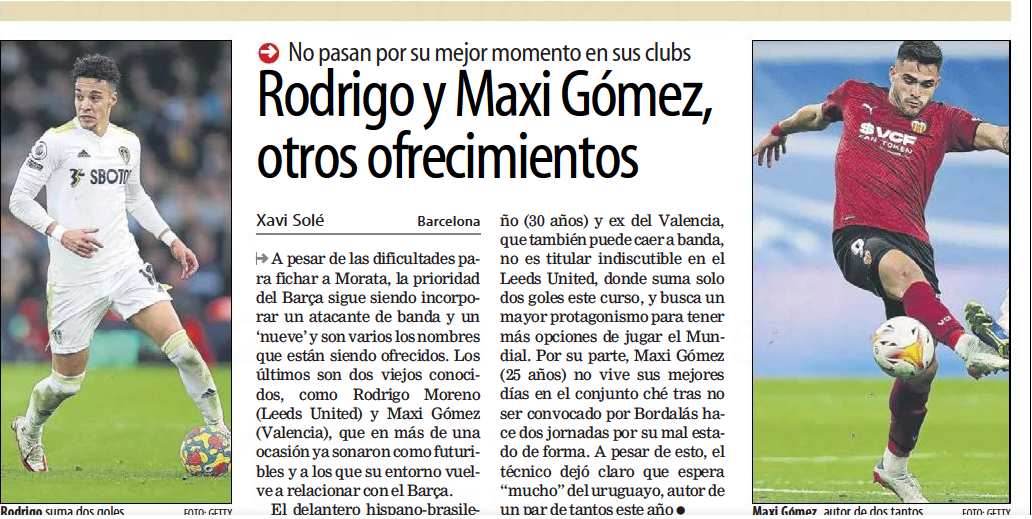 It’s claimed ‘there are several names that are being offered’ to Xavi Hernández’s side and among them are Rodrigo and Valencia’s Maximiliano Gómez.