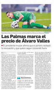 Aston Villa seem to have made an offer to sign UD Las Palmas goalkeeper Álvaro Valles in the winter market, according to Thursday’s Diario de Sevilla.