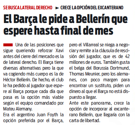 Barcelona have asked Arsenal’s Hector Bellerin ‘to wait until the end of the month’ as they eye up a late move for him.
