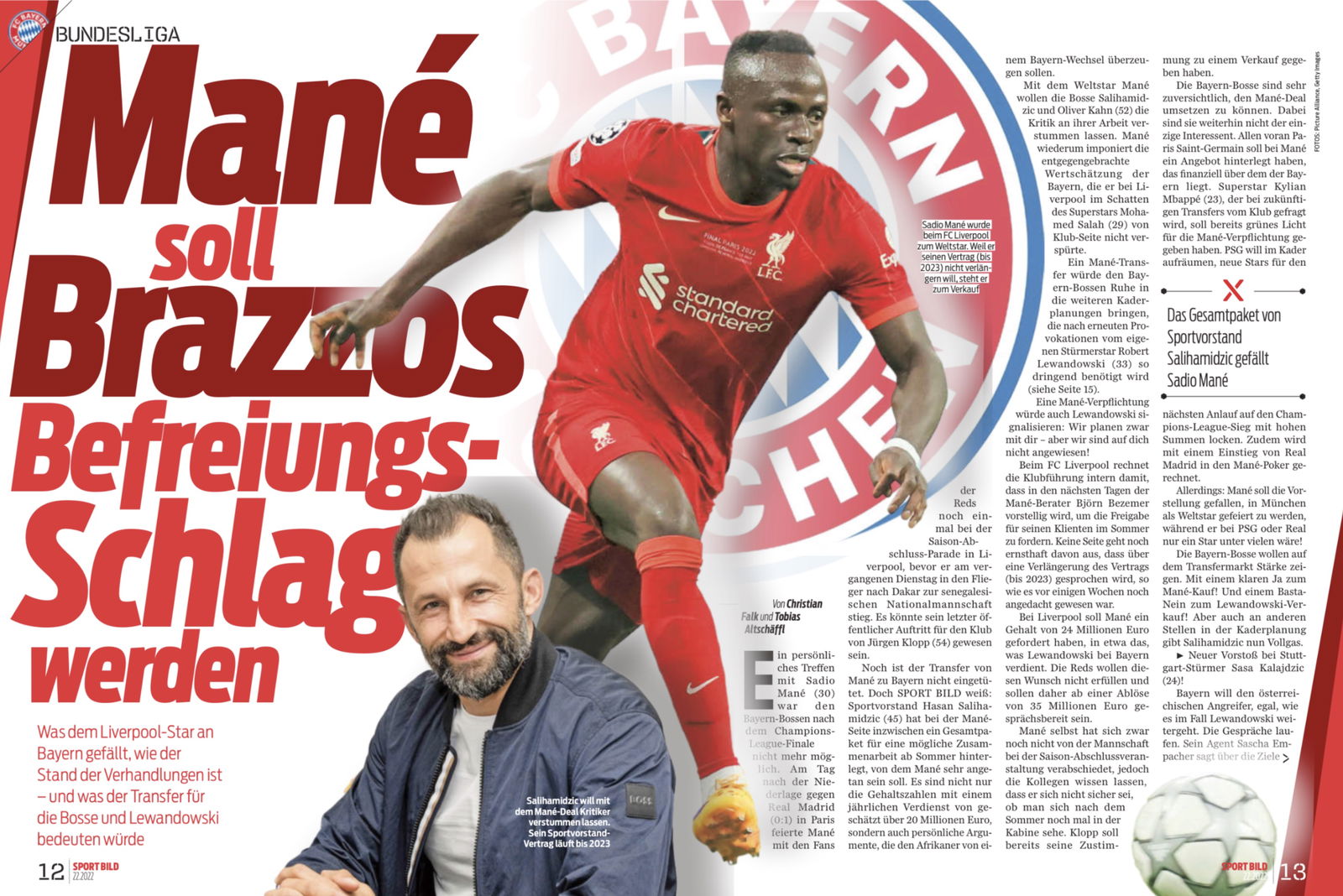 They report that Bayern had planned to hold a personal meeting with Mane after the Champions League final, but that was made impossible by Mane returning to Liverpool and then boarding a plane to Dakar to join up with Senegal.