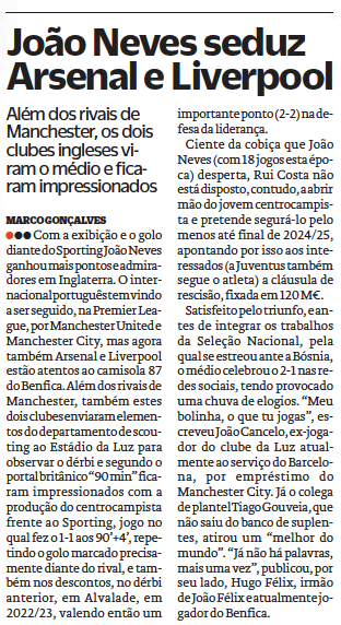 Portuguese newspaper Record today shares a story about that, and brings a message for Arsenal and Liverpool.