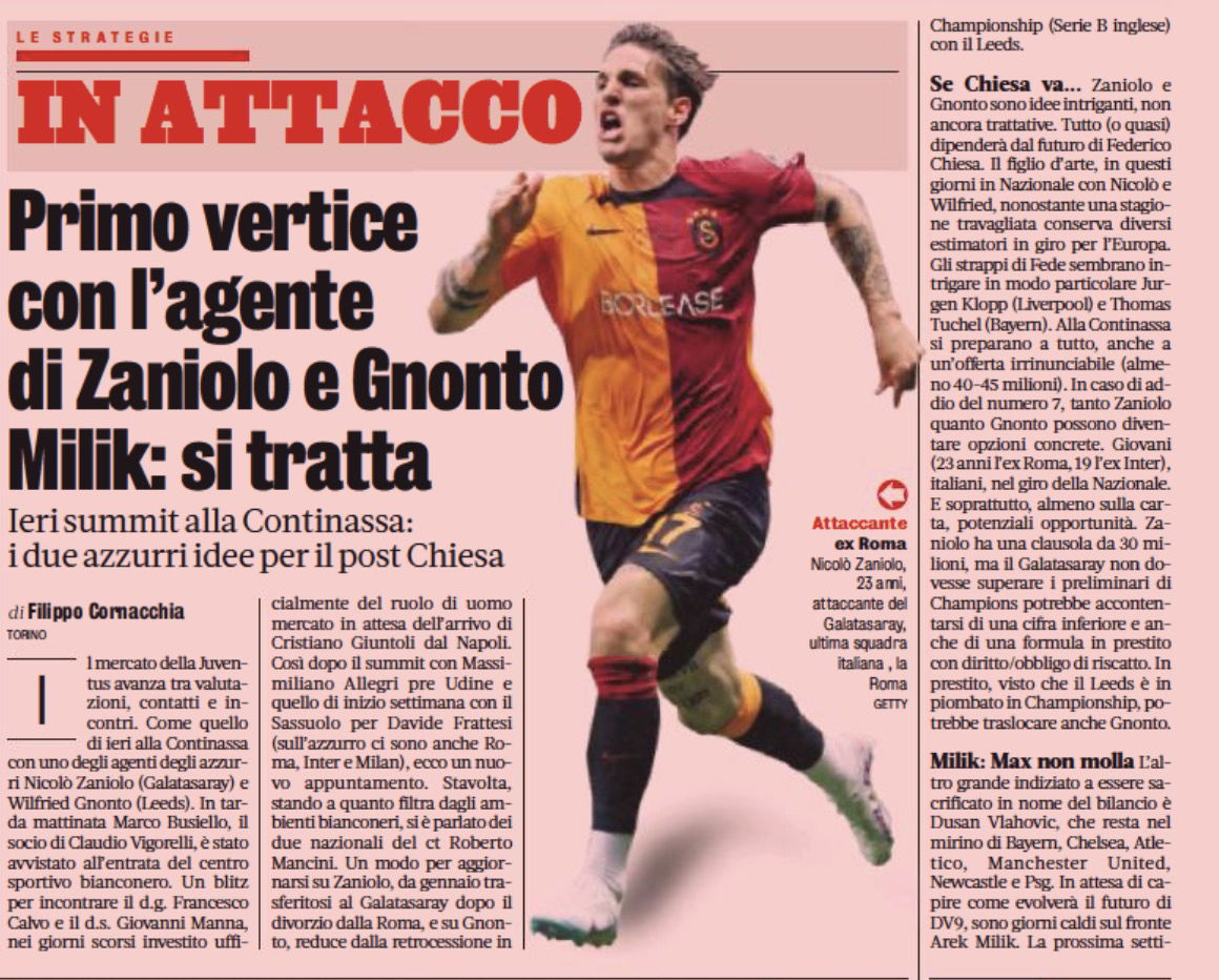 Their information is that ‘there has been talk’ about two clients of his, those being Nicolo Zaniolo and the Leeds United star.