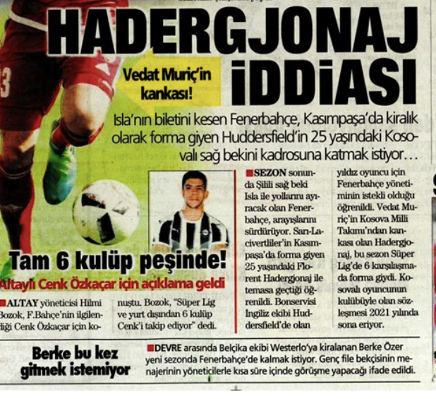 Hadergjonaj was linked with a move to Fenerbahce prior to his move to Kasimpasa and reports suggested at that time they were looking to use the influence of his international teammate Vedat Muriqi.