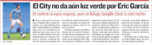 Barca ‘urgently need’ a new centre-back, while City are interested in making cash through García’s sale.