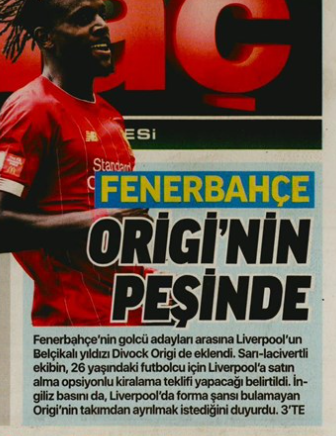 Today, Fotomac claim Fenerbahce are looking to loan the player with an option to buy and that they will open talks with Liverpool soon.