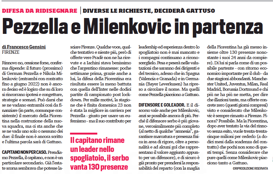 With Dusan Vlahovic seemingly set to stay in Florence now that Gennaro Gattuso has been announced as Fiorentina’s next manager, the same cannot be said about his teammate and compatriot Nikola Mllenkovic.