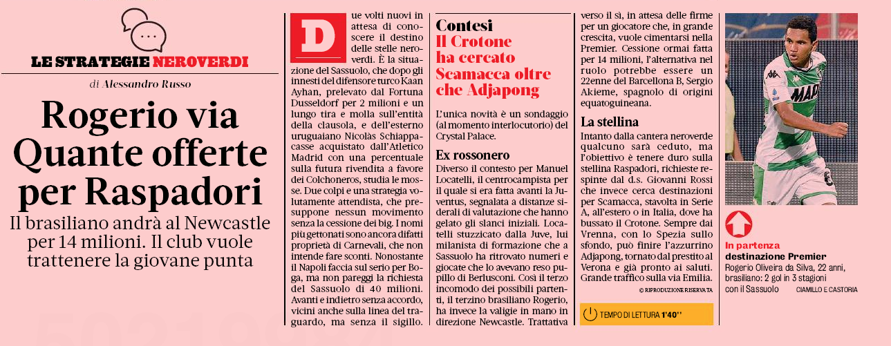 Wanting around €40m or so for the player, the Italians know they could lose their star this summer, especially if a Premier League club go ahead and confirm their interest.
