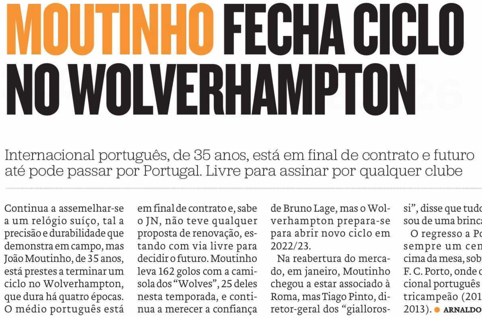 That’s because, as Jornal de Noticias say they’ve been told, Moutinho has not received a renewal proposal from Wolves.