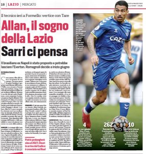 It’s that which makes a deal possible for Lazio, who see him as a ‘dream’ signing, but the newspaper makes clear it won’t be easy for them to get Allan on the cheap, particularly after Everton paid €28m for him in 2020.