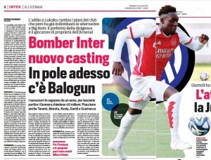 Italian newspaper Corriere Dello Sport today highlight Inter Milan’s interest in Arsenal centre-forward Folarin Balogun.