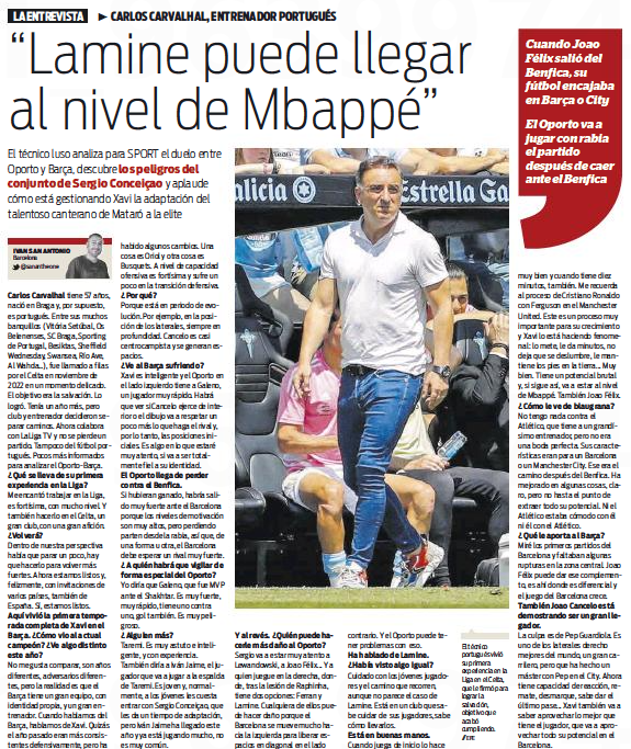 Barca will face FC Porto in the Champions League on Thursday, and former Sporting and Swansea City manager Carlos Carvalhal had a chat with Sport to preview the tie, where he also talked about the Manchester City owned player.