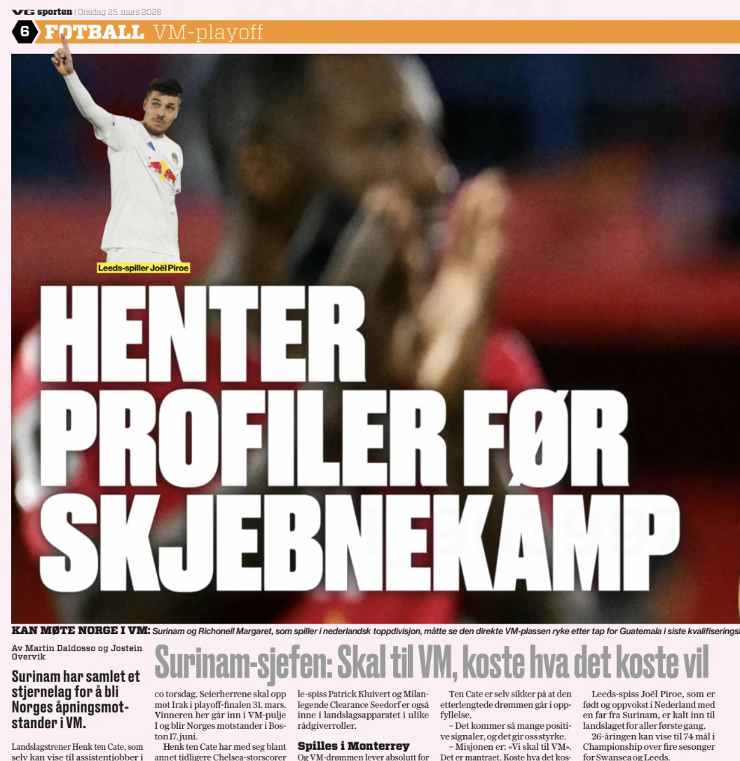 Piroe changed his allegiance to Suriname earlier this year. He was officially called up by the for the international break last week.