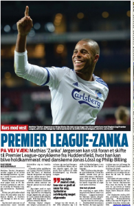 Ekstra Bladet report that Mathias ‘Zanka’ Jorgensen is very close to a move to Huddersfield Town. The Premier League new boys want to improve their squad ahead of the new season and have been working on a deal to sign Zanka from FC Copenhagen.
