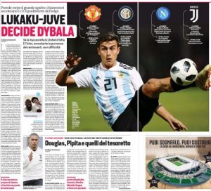 Italian newspaper Corriere Dello Sport brings an update on the Romelu Lukaku saga, which involves Manchester United, Juventus, Inter Milan and Paulo Dybala.