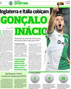Today it’s Portuguese newspaper A Bola who features a page-long story about the race from English and Italian clubs for the 21-year-old.