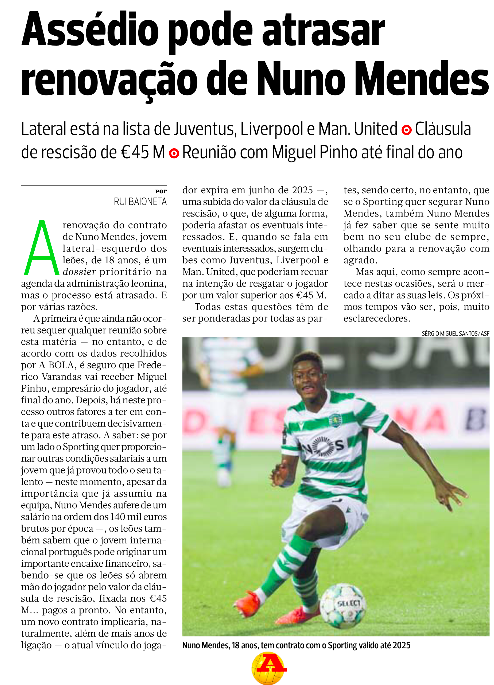 All of these issues have to be ‘weighed up’ by Sporting and his agent, with the only certainty that the Portuguese side wants to keep him.