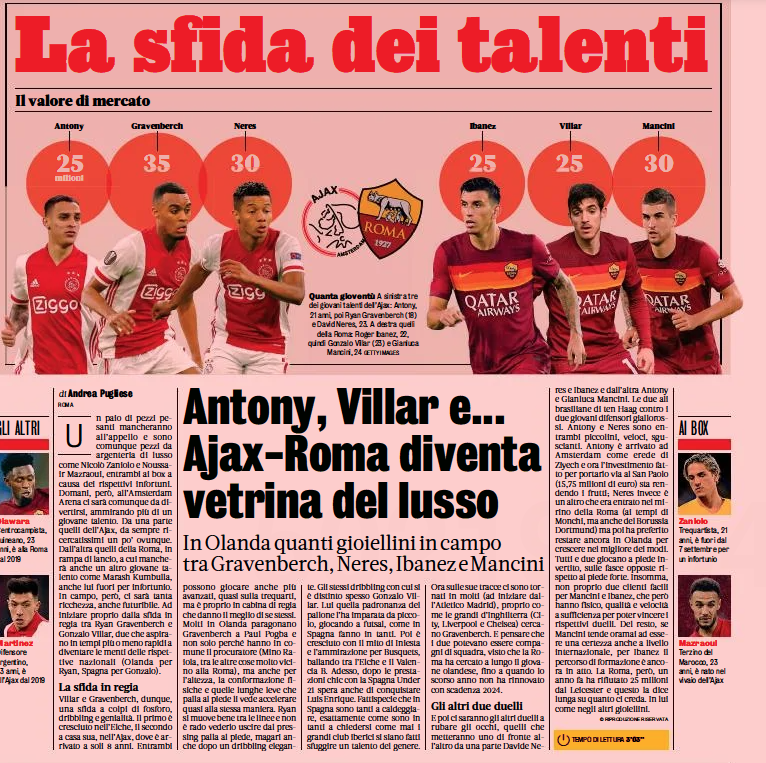 With AS Roma vs Ajax looming in the Europa League, Gazzetta dello Sport decided to take a look at both squads.