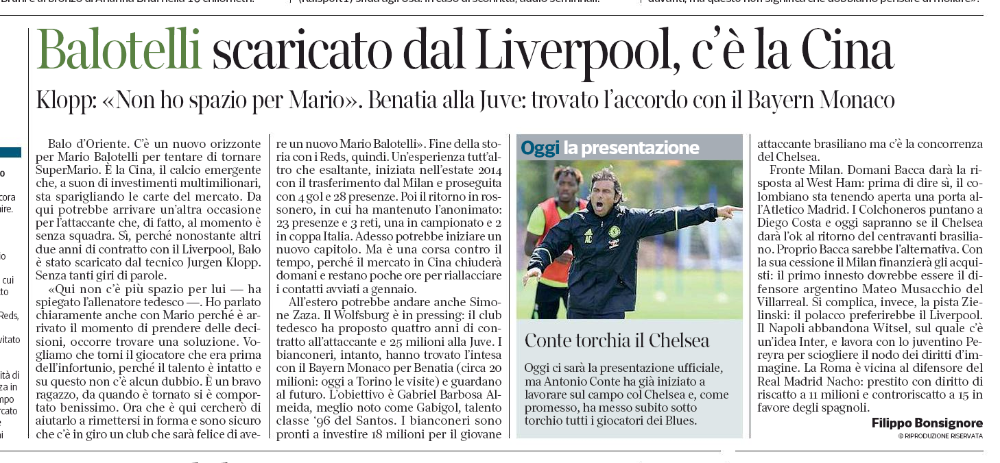 Ok, the good news: Italian newspaper Corriere della Sera say that Mario Balotelli could be off to China.