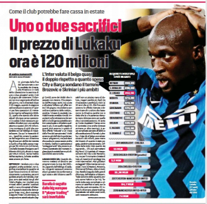 Corriere dello Sport on explain the Serie A side will have to make ‘one of two sacrifices’ to help them improve their financial situation.