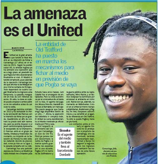 Monday’s edition of AS explains the Red Devils have ‘put in place the mechanism’ to sign Rennes’ Eduardo Camavinga, if his compatriot decides to leave Old Trafford.