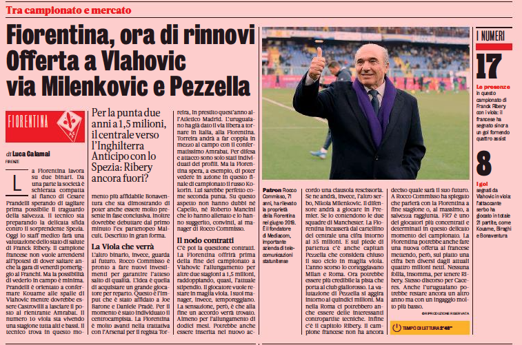 As for the price, it’s expected for Fiorentina to ‘cash in a figure of around €35m’ for the defender.