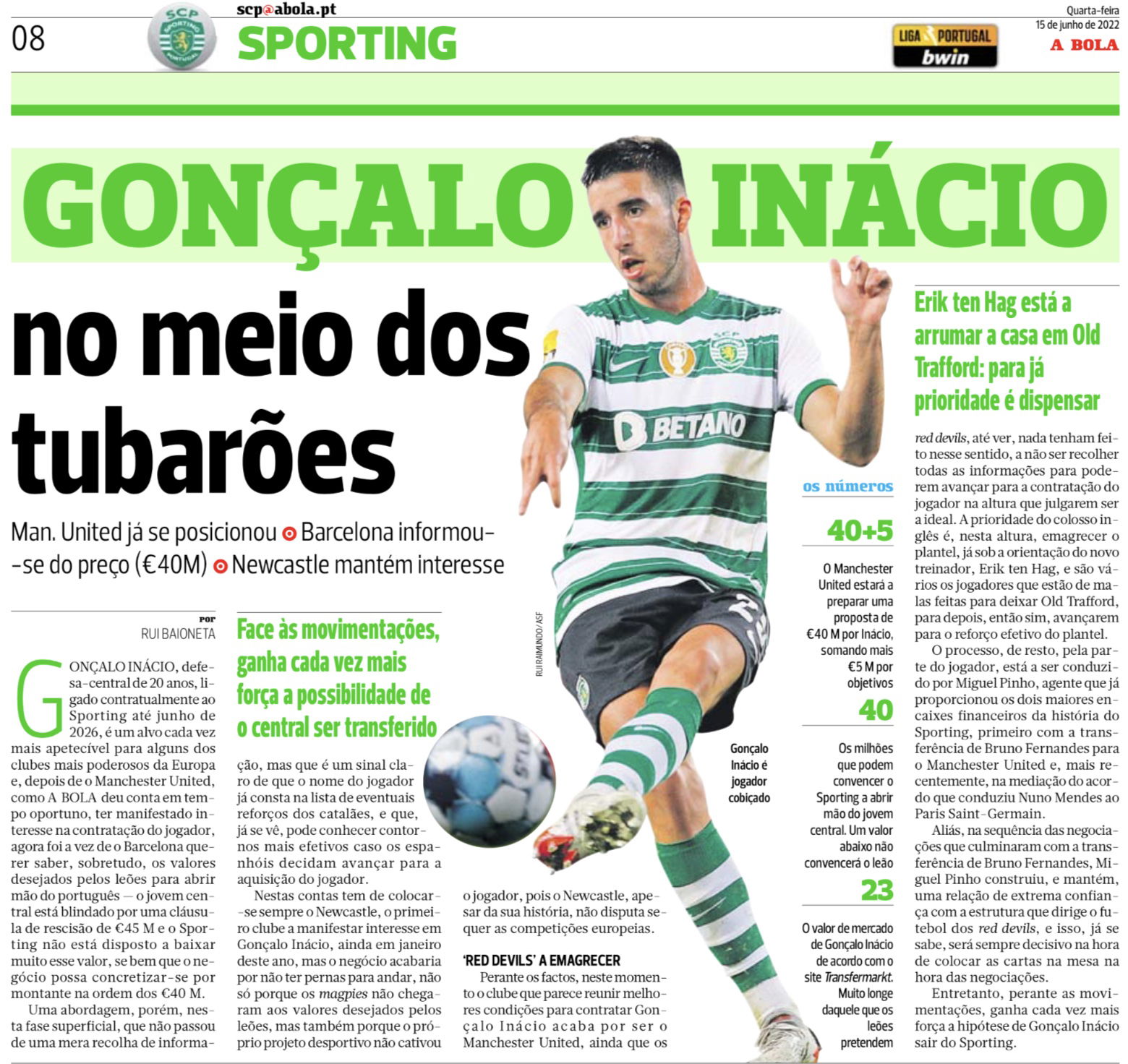 Discussions over Inacio are being led by agent Miguel Pinho, who was a key part of the deal that took Bruno Fernandes to Manchester United.
