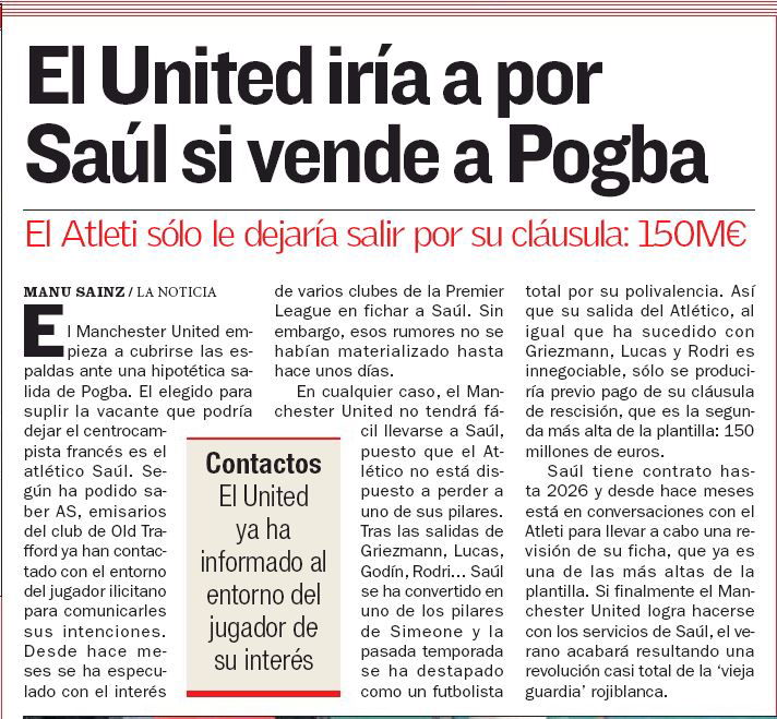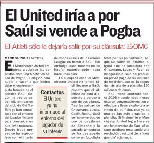 It’s claimed Atletico Madrid’s Saul Niguez is the chosen one by the Red Devils and emissaries from Old Trafford club have already contacted the player’s entourage to communicate their intention.