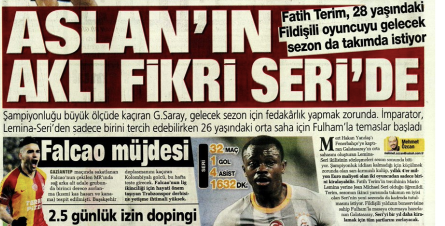 Subsequently, Sabah report Galatasaray manager Terim wants him to remain in Istanbul, as he feels Seri will be an important member of his team next season.