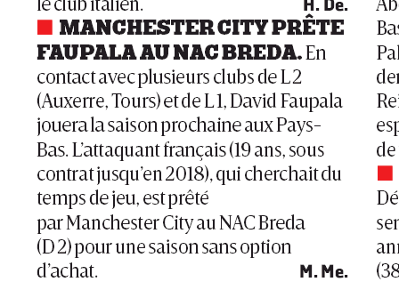 On Wednesday, according to French newspaper L’Equipe, Manchester City have agreed to send Faupala on loan to Eerste Divisie club NAC Breda.