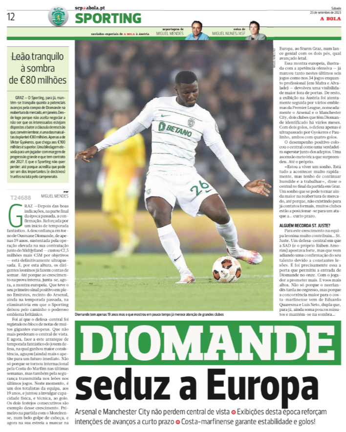 Sporting, for their part, are not concerned about the growing interest in the youngster having tied him down to a deal until 2027 that includes an €80m release clause.