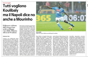 ‘Everyone wants Koulibaly but Napoli also says no to Mourinho’ – Sunday’s Naples regional edition of La Repubblica goes with a headline underlining interest in Kalidou Koulibaly, and also Napoli’s stance against a sale.