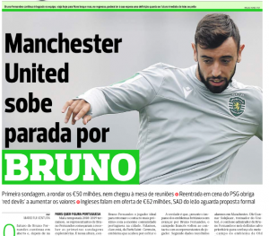 Sunday’s edition of A Bola had a lengthy article explaining Sporting’s worry over Bruno Fernandes €35m exit clause.
