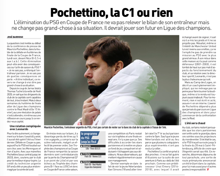 On the other hand, an exit from the Europe’s top elite club competition could lead to a ‘hot summer’ at PSG, for Pochettino and also for the club’s leaders.
