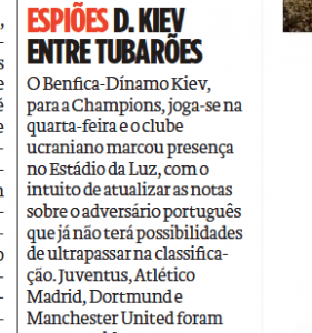 Friday night saw the Lisbon derby, and O Jogo report that multiple ‘spies’ were in the crowd to watch. Manchester United were joined by the likes of Juventus, Atletico Madrid and Borussia Dortmund, as clubs do their groundwork ahead of upcoming transfer windows.