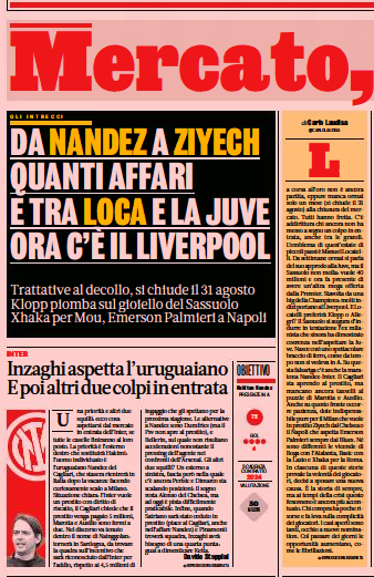 The newspaper points out that Sassuolo have received a ‘mega offer’ from England and follow it up by saying that ‘many clues lead to Liverpool’.