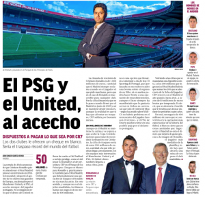 Spanish newspaper Marca, who are Real Madrid leaning, have several articles about Ronaldo’s situation in their Saturday edition. One of those focuses on destination, with Manchester United and PSG picked out.