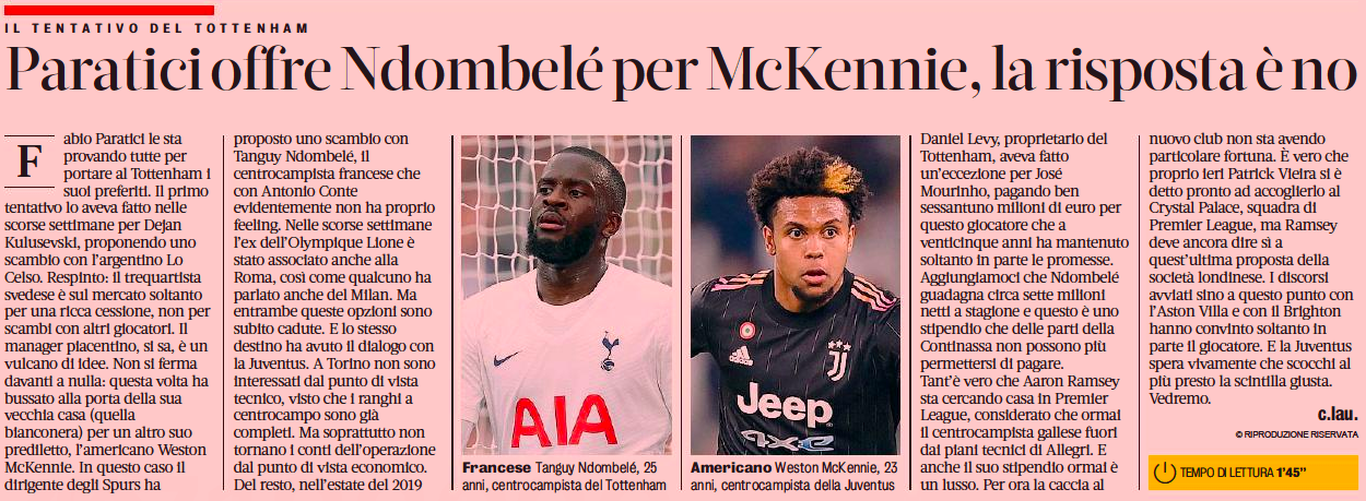 This is the case for other offers he has on the table as Gazzetta explain that talks with Brighton and Aston Villa have only partially convinced Ramsey as well.